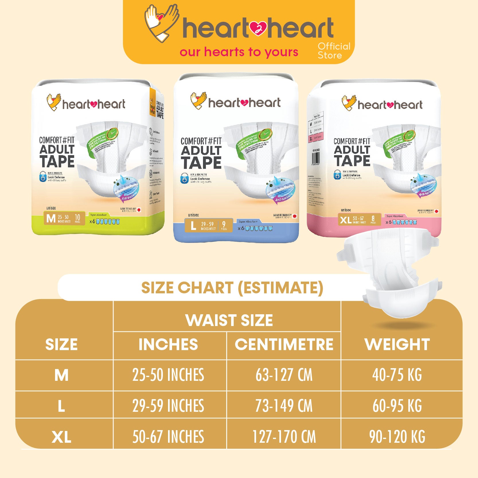 ๐ฏHeart2Heart Adult Disposable Tape Seluar Serapan No.1 Japan Tahan Lasak Lampin Tape Dewasa ๆไบบ็บธๅฐฟ็ (M/40 L/36 XL/32)